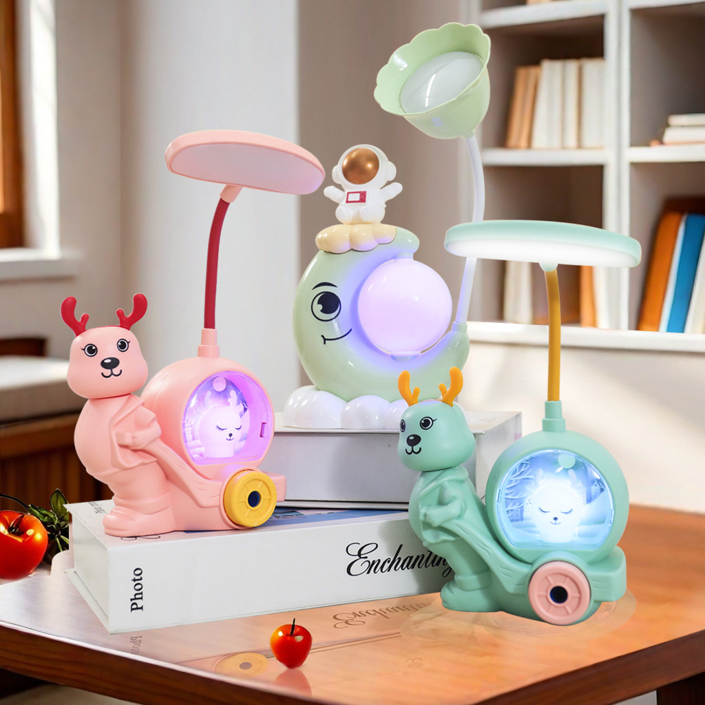 Lampu meja baca LED dengan sakelar sentuh pengisian daya USB untuk asrama siswa kartun, lampu baca kreatif, lampu tidur kartun, hadiah.