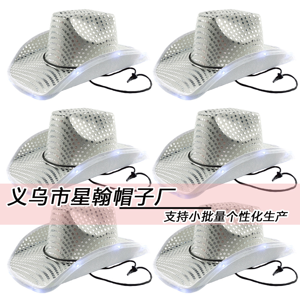 Topi Bersinar Manik-manik Kustom Pabrik Topi Bercahaya untuk Pertunjukan Halloween Topi Jazz Topi Koboi Berwarna dengan Lampu
