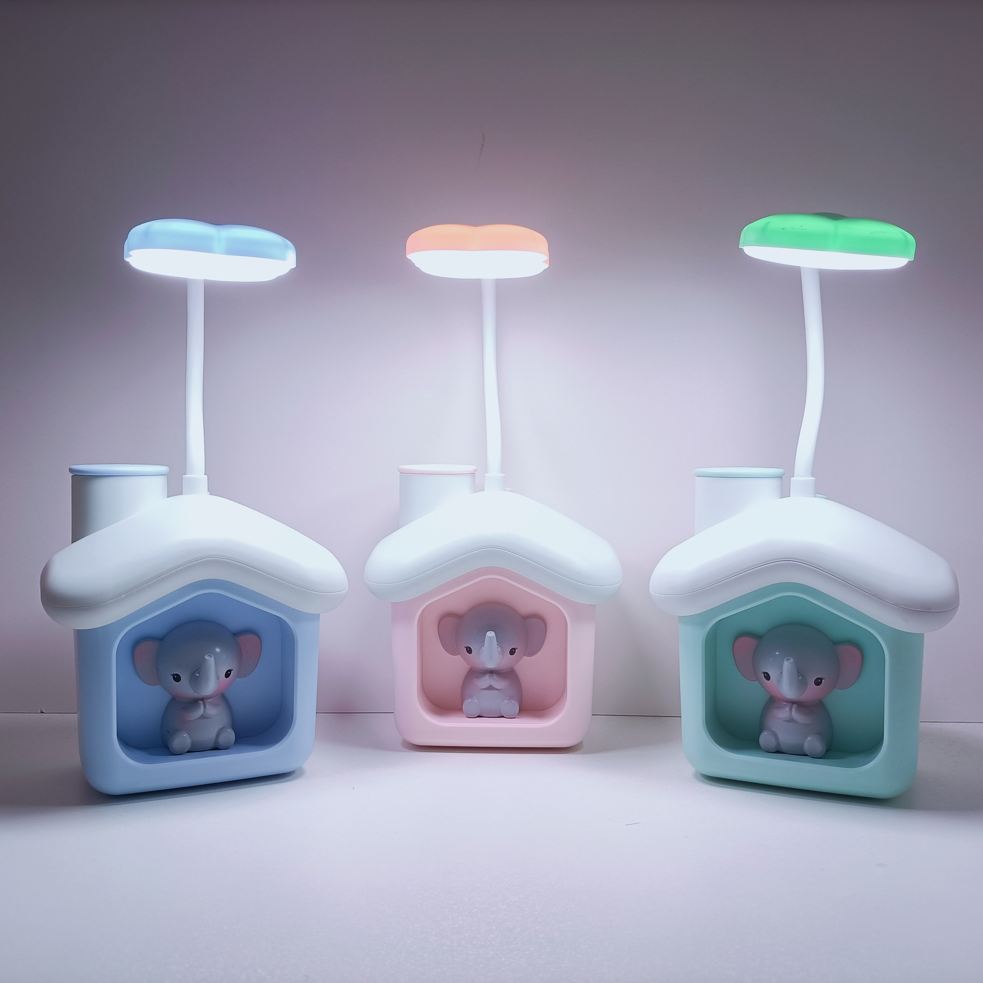Lampu Meja Gajah Kecil Model Baru Kartun Lucu Hewan Peliharaan LED Lampu Meja Dua Tingkat Ornamen Lampu Malam Kecil Rasa Superior Kepala Tempat Tidur