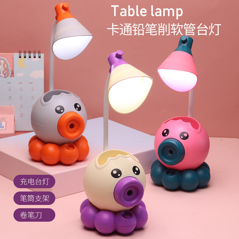 Lampu baca kamera kartun, Perlindungan Mata gurita lampu meja LED rautan pensil lampu desktop kamar tidur samping tempat tidur rautan pensil USB lampu malam