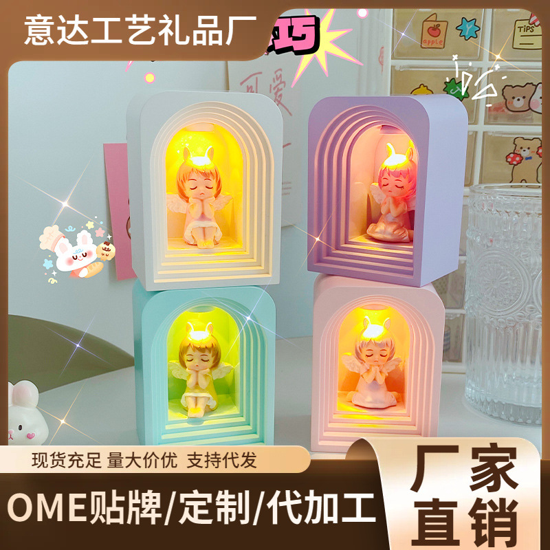 Boneka LED dekorasi tangan imut dekorasi rumah malaikat kecil kartun baru hadiah lampu malam