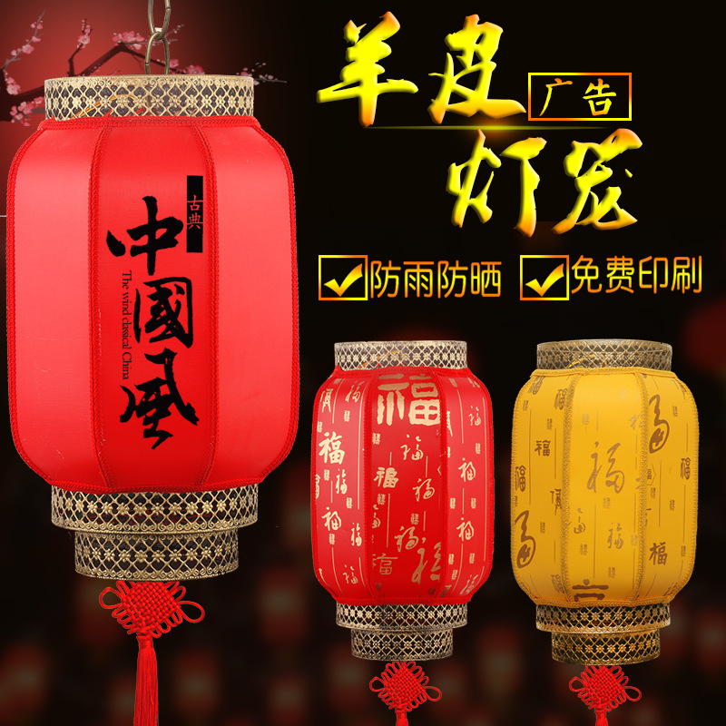 Lentera kulit domba Tiongkok antiair luar ruangan Festival Musim Semi lampu gantung gaya Tiongkok antik lentera cetak iklan