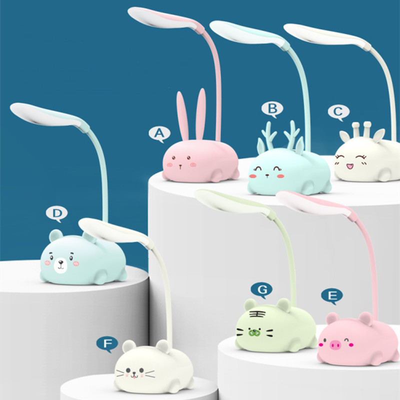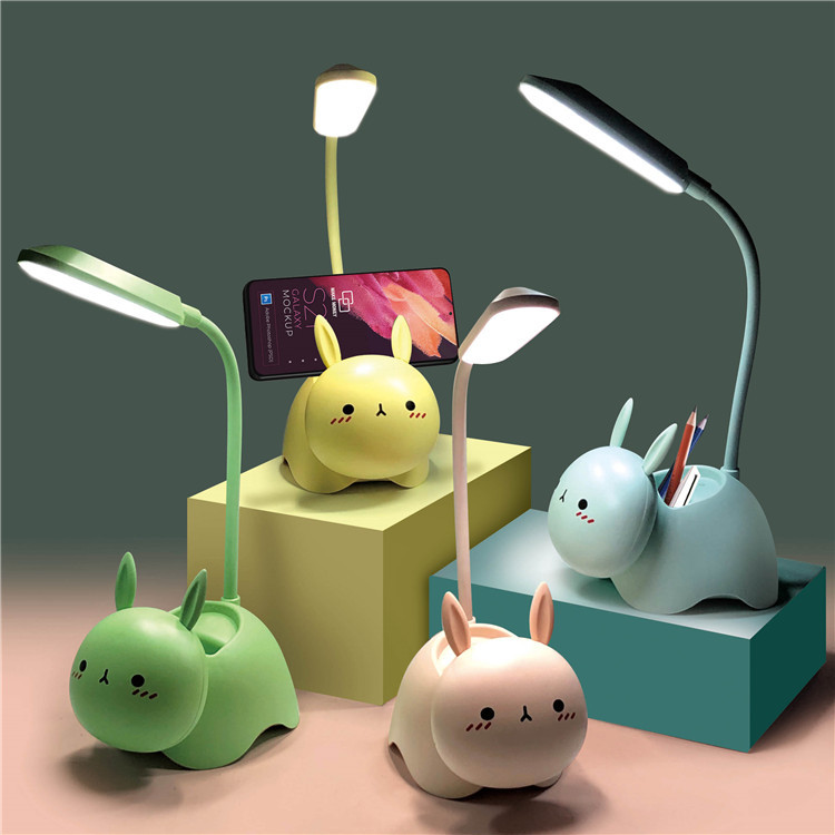 Lampu meja LED anak-anak, lampu suasana, lampu malam desktop anak-anak, dudukan pena LED, pelindung mata ayam kelinci, hewan peliharaan lucu