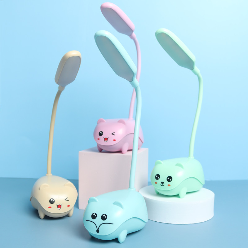 Lampu Meja Belajar Pelindung Mata Isi Ulang USB Siswa Lampu Meja LED Kartun Tikus Kecil Hewan Peliharaan Kreatif Hadiah TK