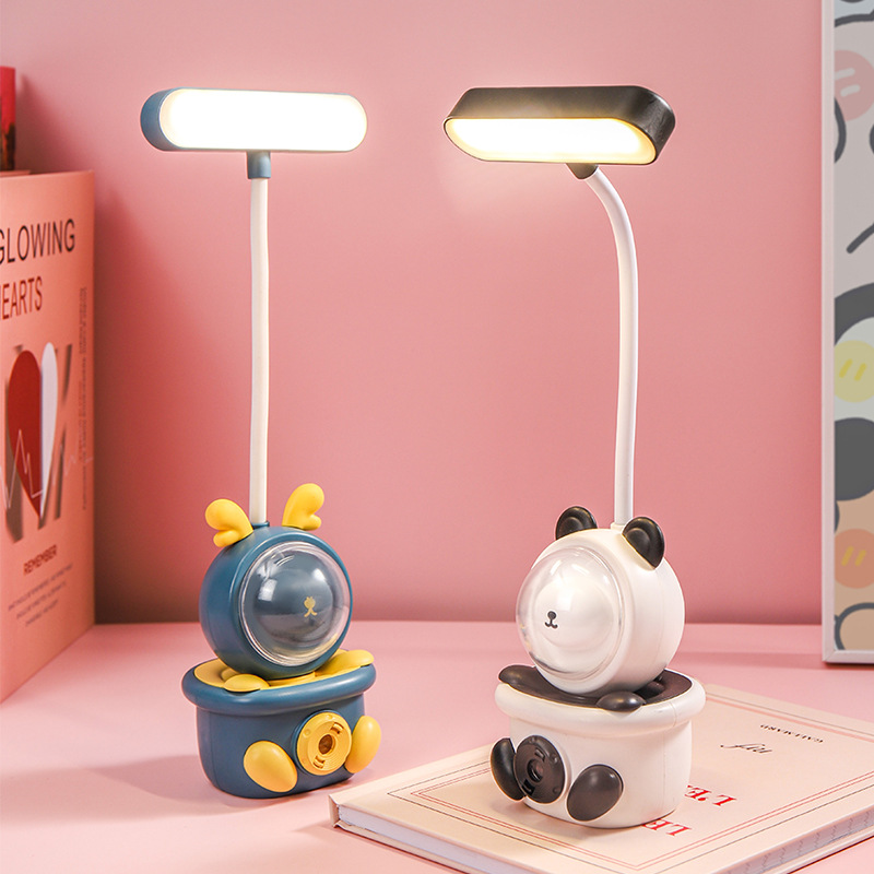 Lampu meja kreatif pesawat peliharaan kecil lucu, pelindung mata siswa, lampu meja tulis, hewan kartun lucu dengan rautan pensil