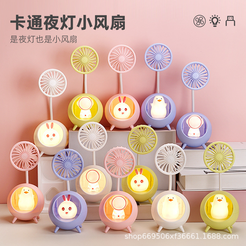 Lampu meja LED kartun multifungsi, kipas angin kecil kebisingan rendah, lampu malam, kipas kecil lucu USB dapat diisi ulang logo cetak
