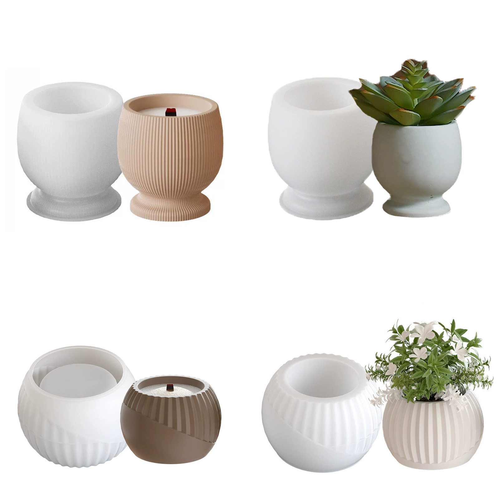 Cangkir Bulat Cangkir Lilin Cangkir Silikon Resin Cetakan Meletat Plastik Gelas Anggur Garis DIY Pot Bunga Kotak Penyimpanan Gypsum