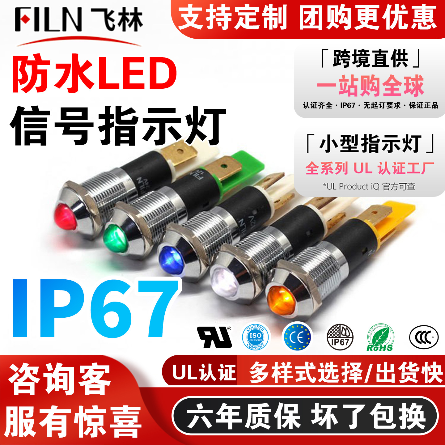 Filn Feilin lampu sinyal kepala cembung, lampu indikator pin tumpuk pengisian energi baru 12mm lampu sinyal peralatan luar ruangan