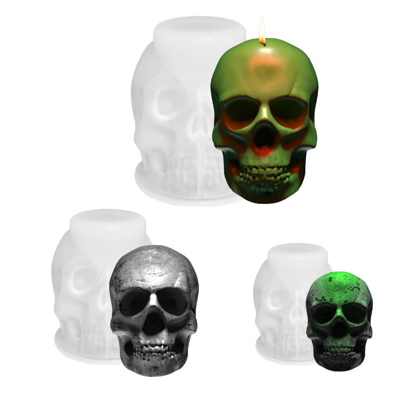 Jiaxian cetakan lilin aromaterapi tiga gaya mudah demoulding DIY epoksi kristal cetakan tengkorak Halloween cermin