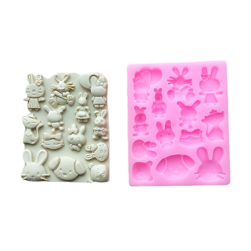 Cetakan kue silikon kartun hewan kelinci diy cetakan plester aromaterapi lilin epoksi fondant coklat