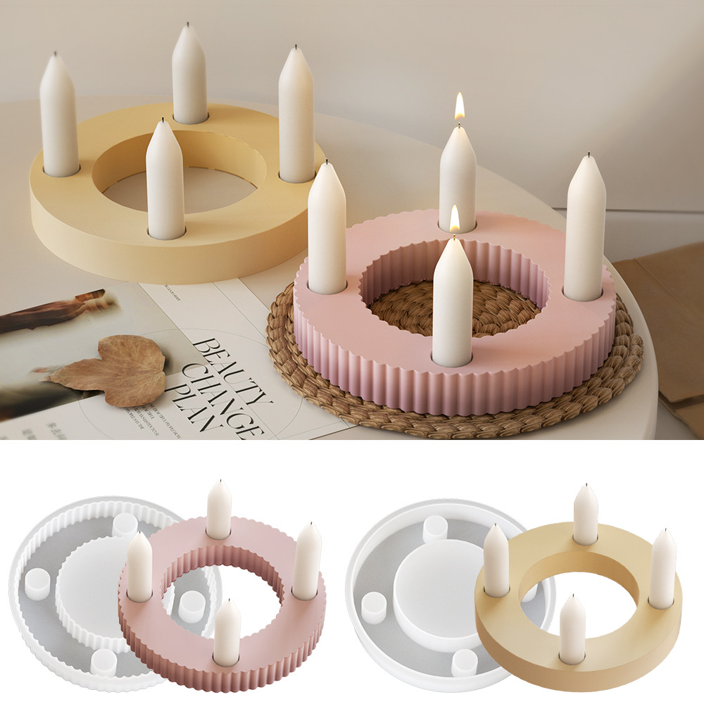 Cetakan silikon tempat lilin bulat satu lubang, Dekorasi dasar lilin resin plester garis cincin diy