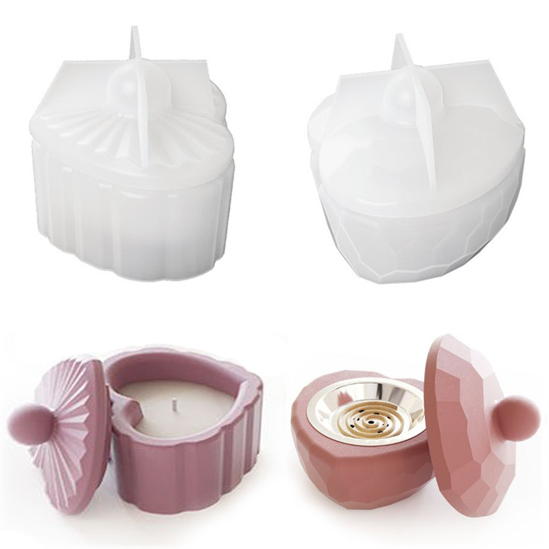 Kotak penyimpanan pembakar dupa Cinta bergaris diy epoksi kristal cetakan silikon cangkir lilin aromaterapi bentuk hati pola jala grosir