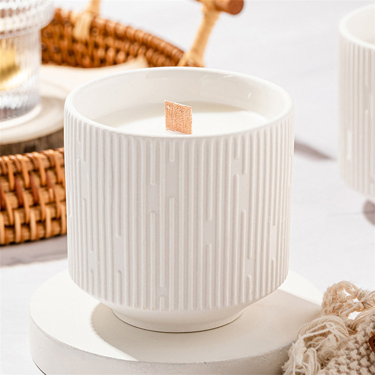 Cross-border logo cangkir lilin keramik bergaris 10oz cangkir lilin aromaterapi keramik bulat Eropa diy