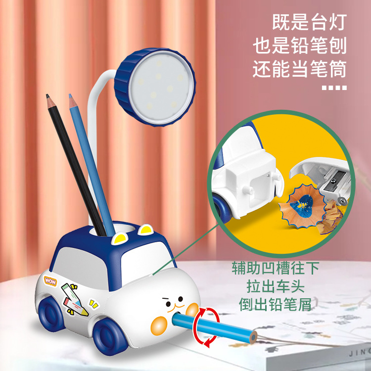 Rautan pensil mobil kartun hewan, rautan pensil lampu meja DIY stiker USB pengisi daya pelindung mata lampu malam hadiah