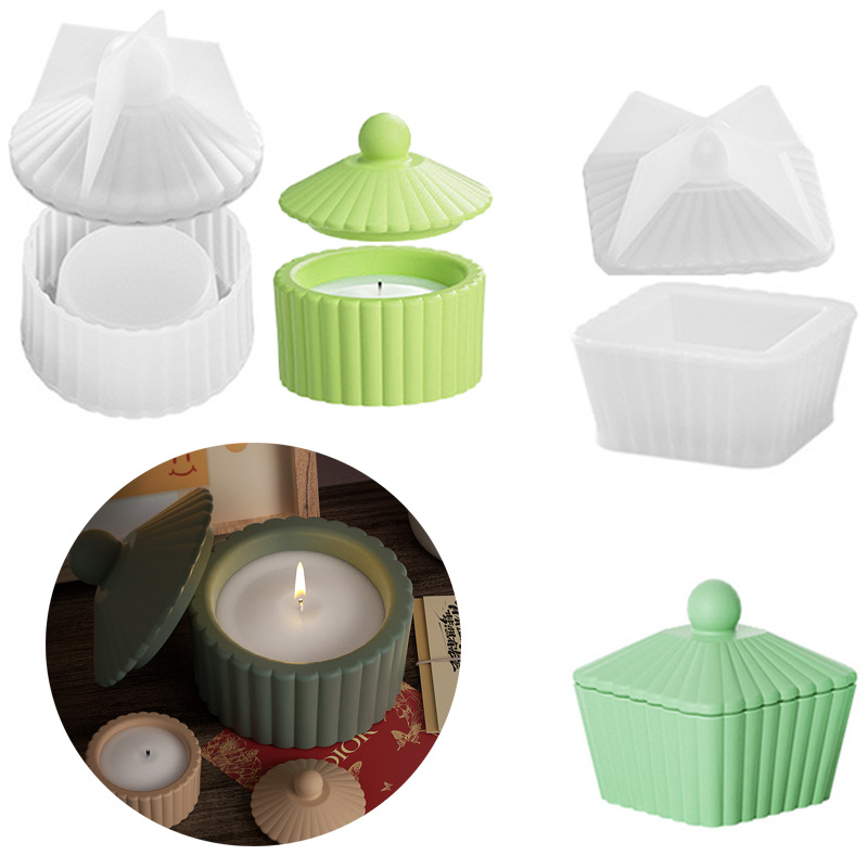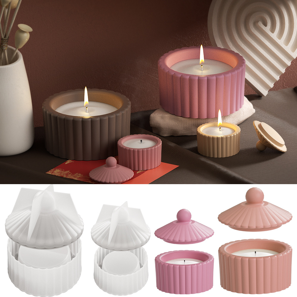 Stoples penyimpanan bergaris bulat cetakan silikon diy kristal epoksi plester cangkir lilin aromaterapi ornamen