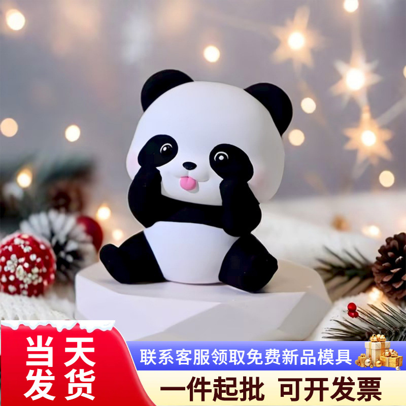 Kartun 3D Shy Panda Silikon Cetakan Menutupi Wajah Panda Panda Aroma Lilin Gypsum Membuat Ornamen Hewan