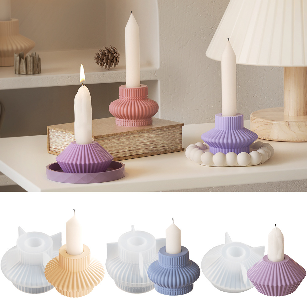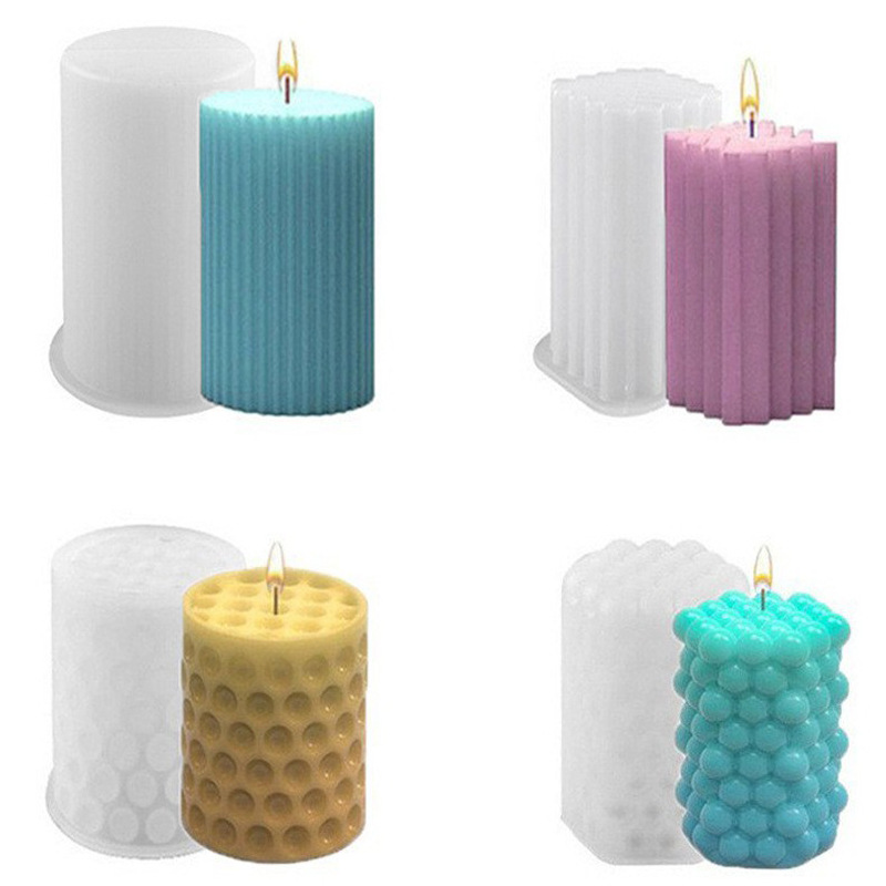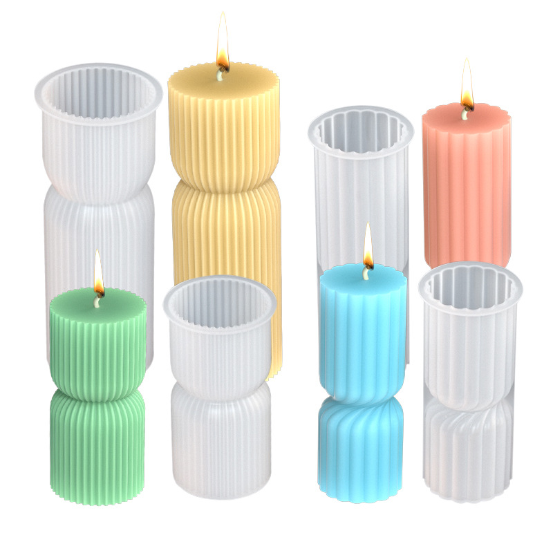 Cetakan lilin silinder bergaris, alat abrasif epoksi pilar bergaris ketebalan furnitur plester aromaterapi DIY