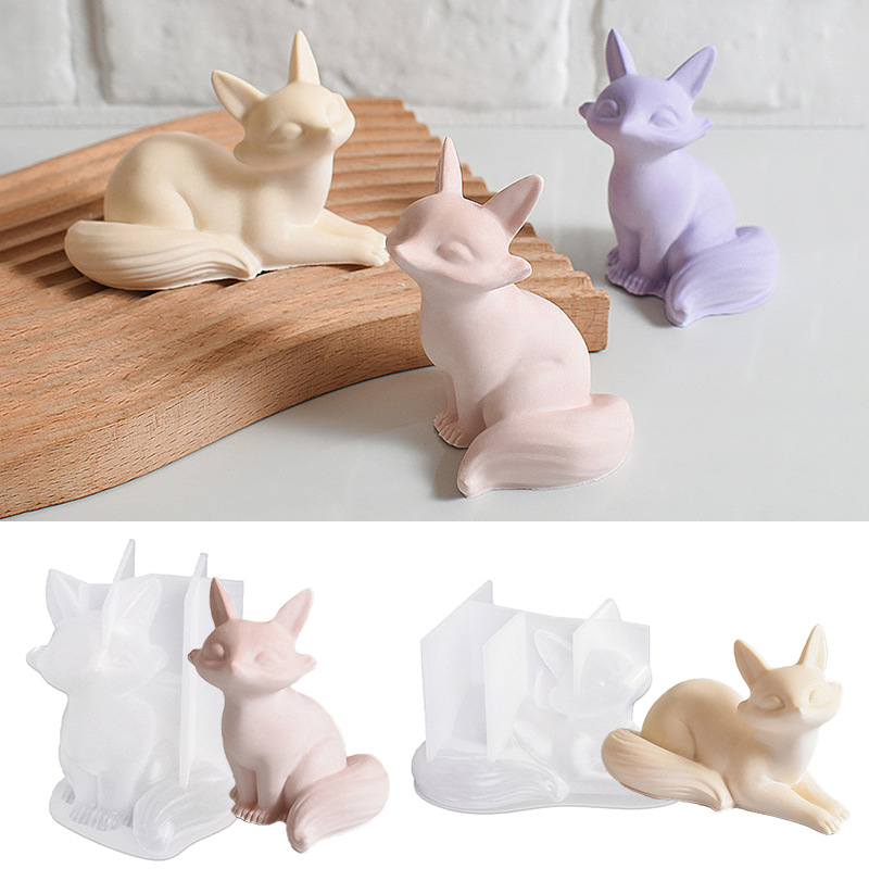 Kristal Menetes DIY3D Tiga Dimensi Rubah Silikon Cetakan Kartun Cermin Rubah Harum Ornamen Gypsum Tempat Grosir