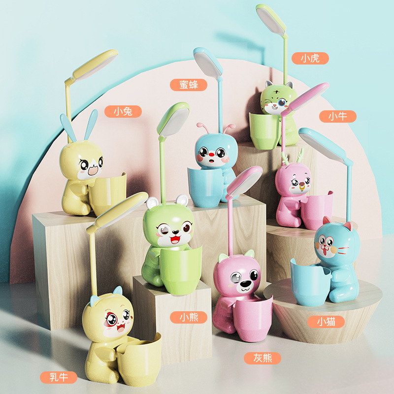 Lampu meja kartun Jingdang kucing, tempat pena hewan, rautan pensil, lampu meja asrama, usb dapat diisi ulang, lampu samping tempat tidur, Cetak Sekolah