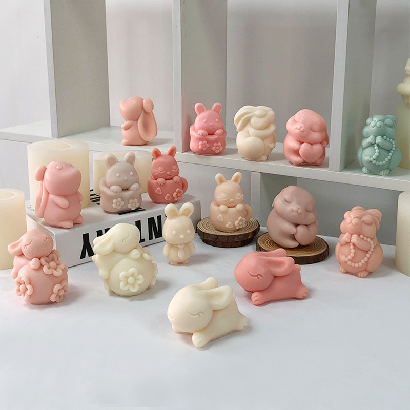 Cetakan silikon hewan plester lilin aromaterapi seri kelinci cetakan dekorasi plester epoksi kelinci kartun DIY