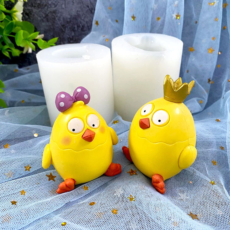 Cetakan silikon 3D bentuk ayam putri kartun, cetakan silikon untuk cokelat, lilin aroma ayam putra, plester, resin