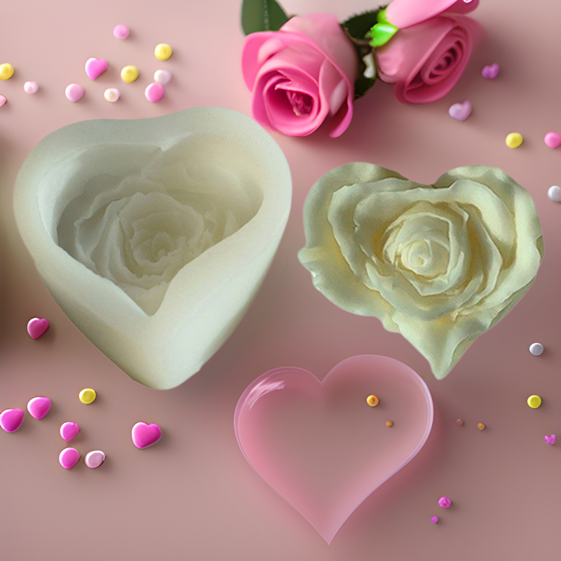 Rose love cetakan silikon lilin aromaterapi, cetakan kue dekorasi plester epoksi mawar bentuk hati