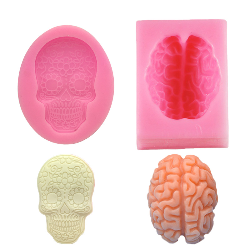 Lilin silikon aromaterapi wajah tengkorak, cetakan lilin dekorasi epoksi plester aromaterapi otak