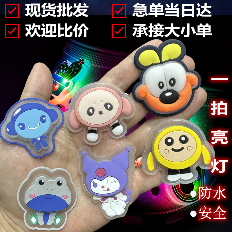 Pabrik grosir tas pakaian sepatu dan topi aksesori tekstil kartun plastik karet lompat cahaya shell personalisasi tanda