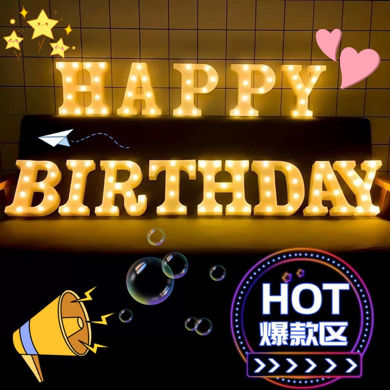 Cross-border dalam stok lampu huruf Selamat Ulang Tahun Selamat Tahun Baru pengakuan tata letak bagasi dekorasi alat peraga kreatif
