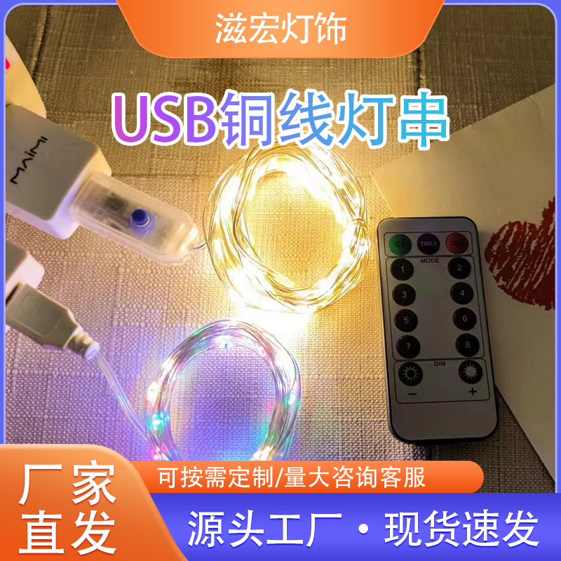 Kustom Suasana Lampu Kawat Tembaga Lampu Kawat Tembaga Kawat Kabel Tembaga USB Remote Kontrol Lampu Malam Kecil Lampu Hias Lampu Warna