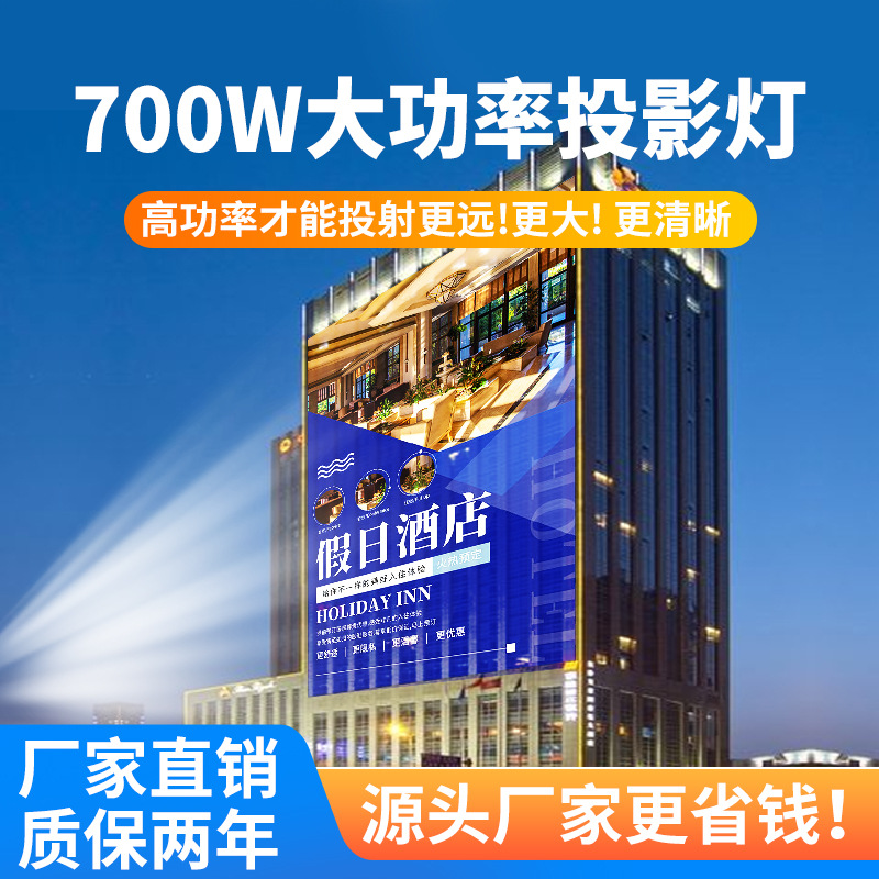 Lampu proyeksi iklan logo luar ruangan, lampu iklan signage, lampu sorot LED luar ruangan, teks, pola peringatan etalase
