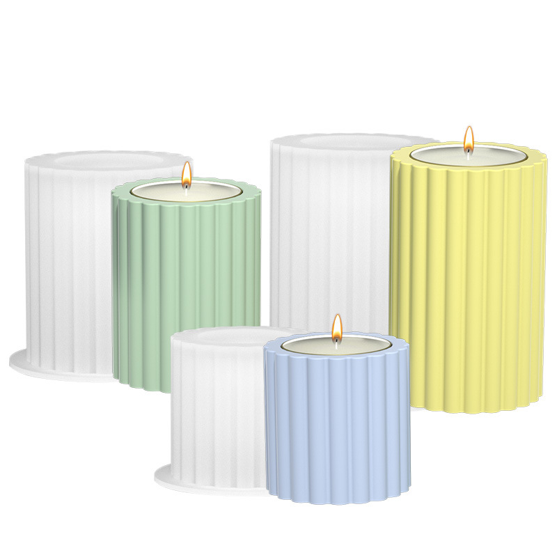 Tiga DIY kristal epoksi cermin cetakan tempat lilin bulat bergaris tempat lilin semen plester cetakan lilin grosir