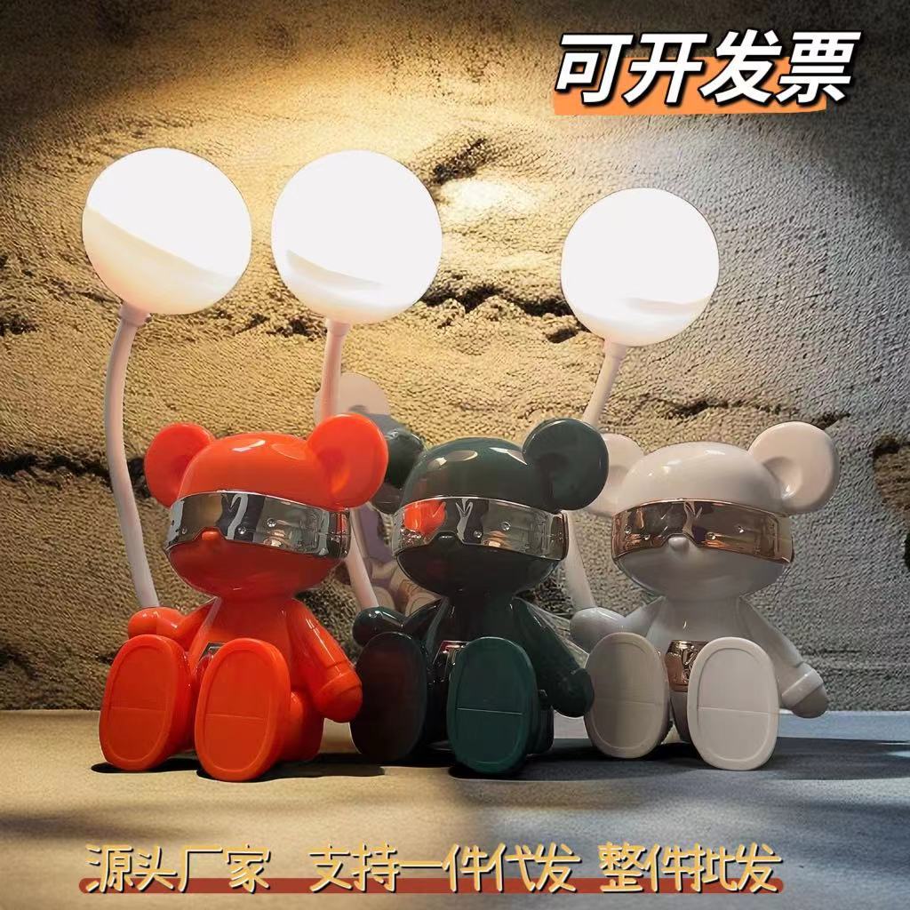 Lampu Meja Baca Lipat Atas Meja Beruang Kekerasan Ringan Lampu Malam Asrama Kartun Isi Ulang USB Lampu Meja Ornamen Hadiah Tangan