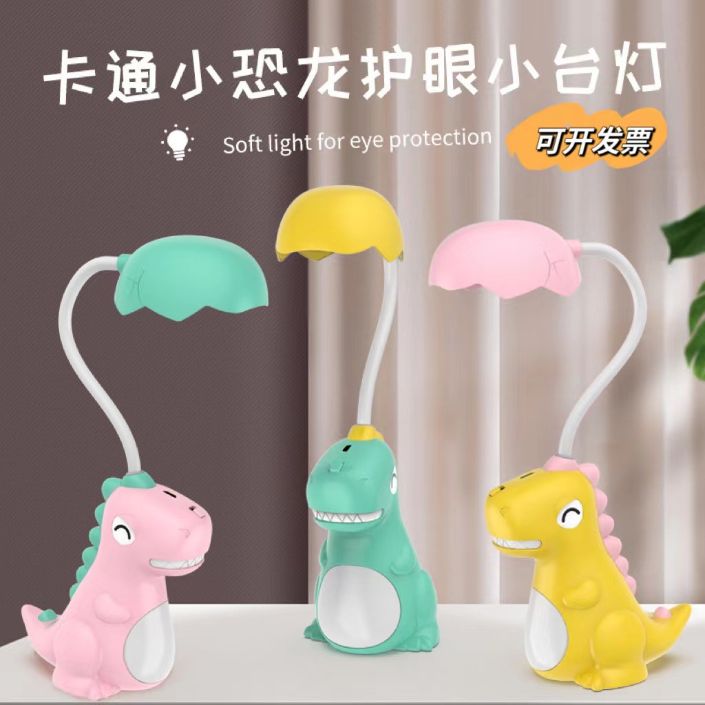 Lampu baca meja dinosaurus Tyrannosaurus kartun pengisian daya lintas batas lampu pelindung mata siswa belajar kamar tidur lampu LED samping tempat tidur