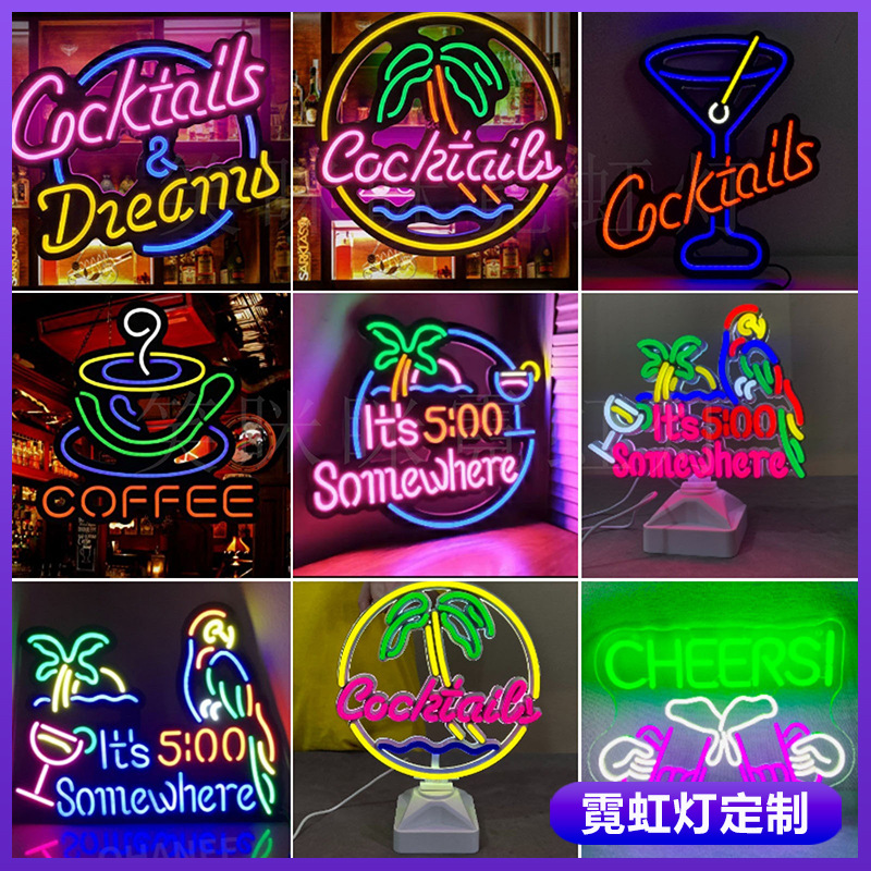 Lampu neon Led dapat disesuaikan bar koktail lampu mie pohon kelapa piring pemodelan lampu dekoratif Bahasa Inggris