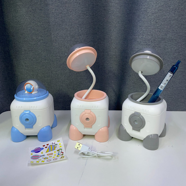 Lampu meja kecil spaceman lucu kartun lampu malam multifungsi lampu baca siswa lampu belajar dengan rautan pensil