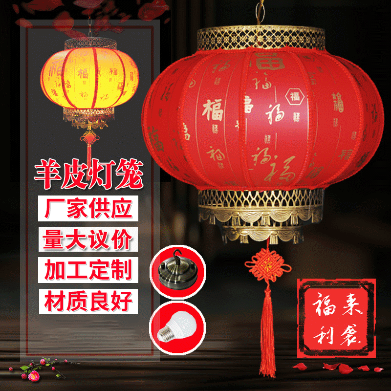 Lentera kulit domba bulat besi tempa antik lentera merah tabir surya tahan air lentera iklan Festival Musim Semi Pertengahan Musim Gugur lentera dekoratif
