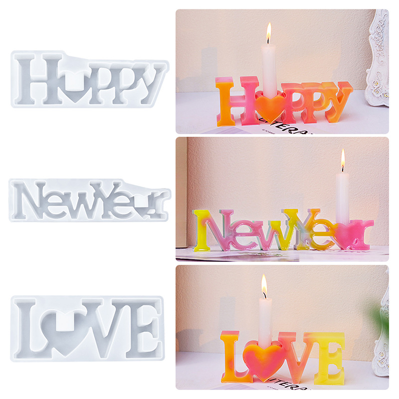 Diy Kristal epoxy bahasa Inggris huruf Candlestick silikon cetakan CINTA berbentuk hati dekorasi cinta lilin aromaterapi meja
