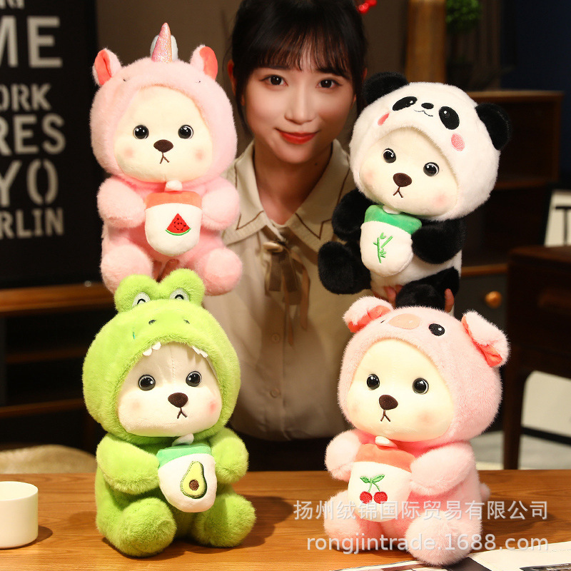 Mainan boneka beruang kartun lucu, transformasi gaun panda berkerudung hadiah perusahaan boneka beruang