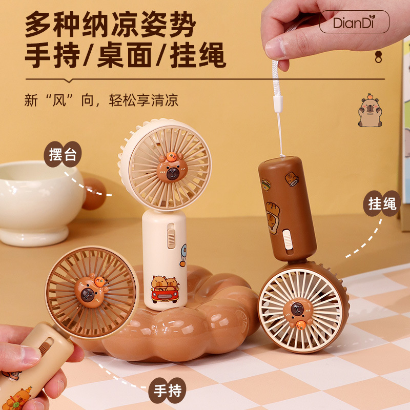 Kartun Capybara Genggam Kipas Kecil Musim Panas Perjalanan USB Charge Portabel Kipas Listrik Siswa Logo Kustom