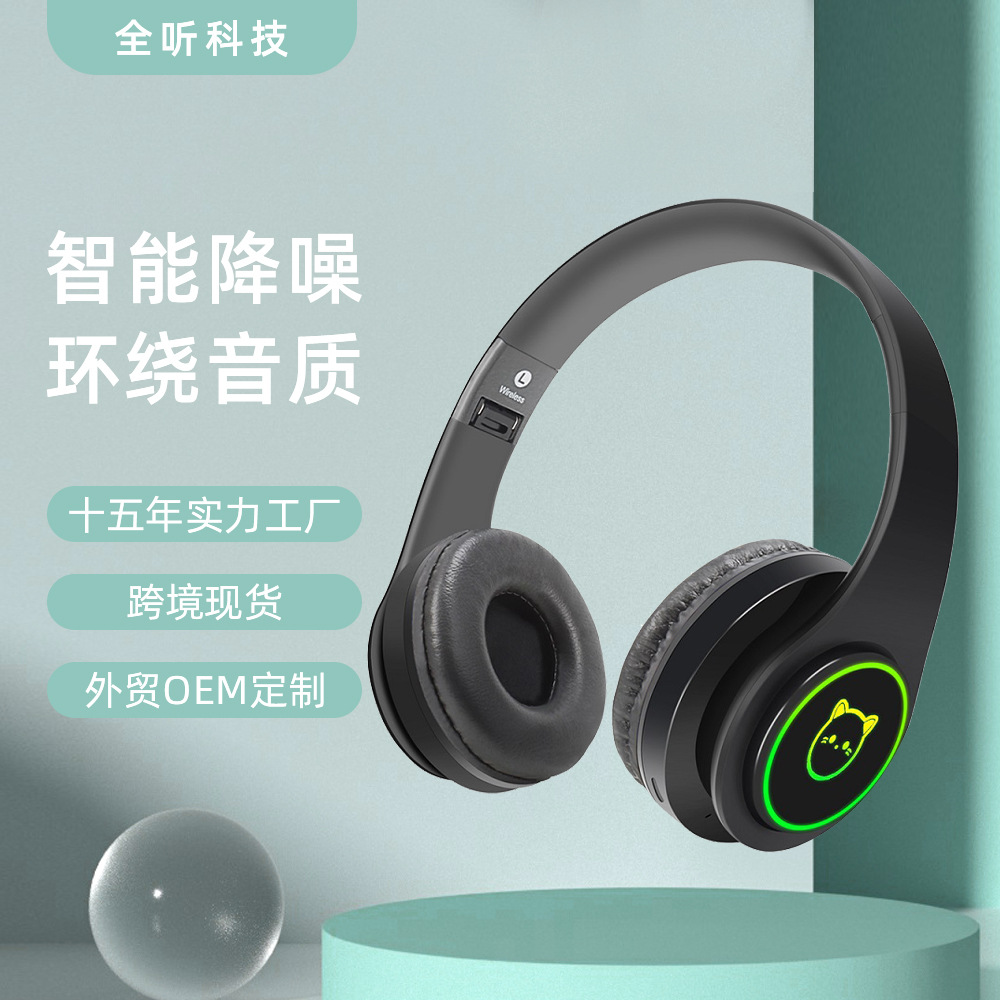 Headset Bluetooth nirkabel, headset Bluetooth nirkabel, headset pemancar cahaya LED warna-warni, dapat disesuaikan, logo pola bercahaya