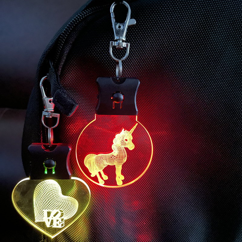 Akrilik LED bercahaya gantungan kunci kreatif ransel aktivitas lampu dukungan iklan pola flash merek liontin produsen