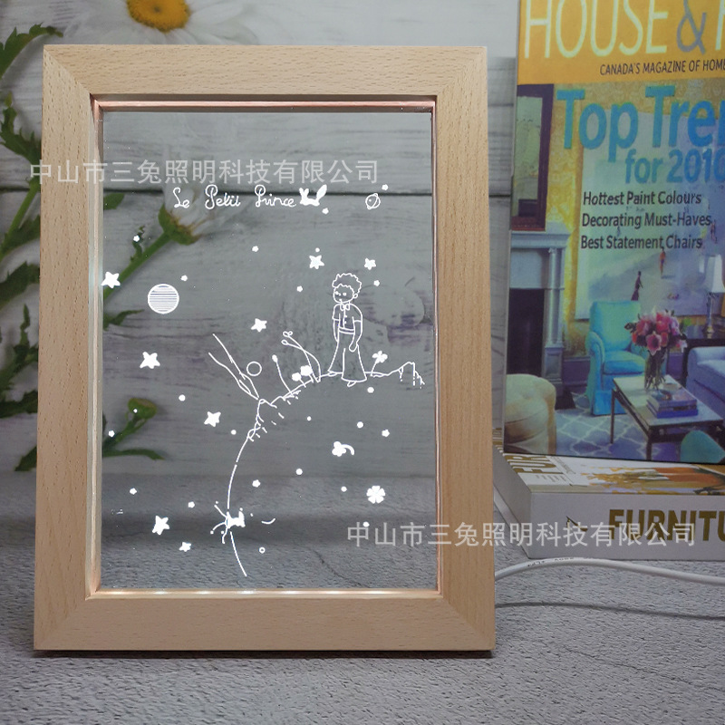 Lampu meja bingkai foto kecil 3D pangeran kecil lampu malam LED pendukung DIY hadiah romantis satu generasi