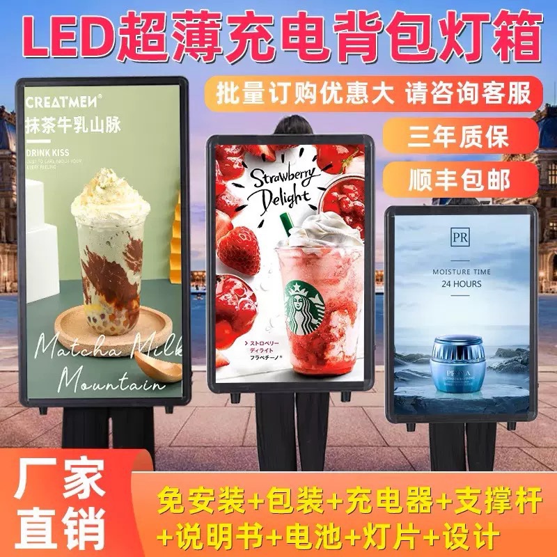Kotak Lampu Gambar Gambar Super Tipis Papan Reklame Lantai Bergerak Tipe Berdiri LED Isi Ulang Pajang Poster Bercahaya Rak Tempat Makan Mal