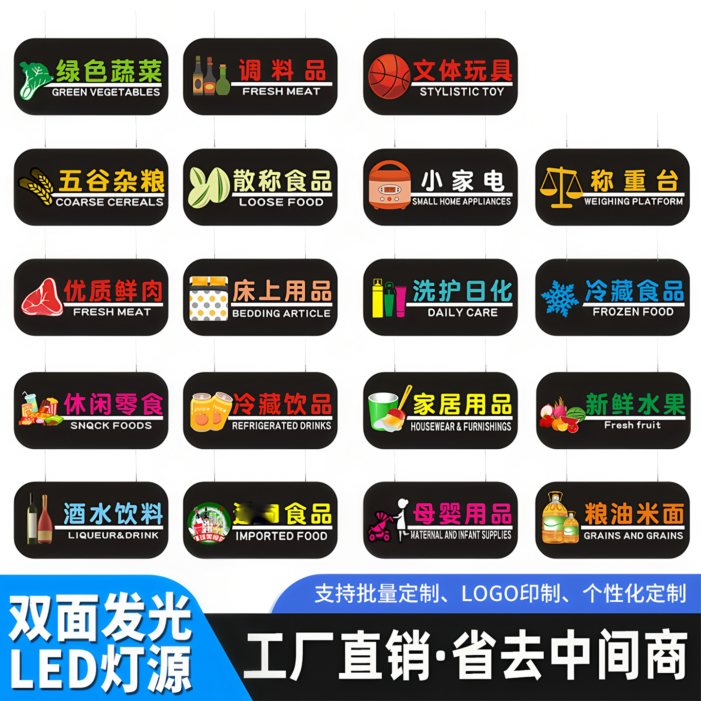 Kustom LED Dua Sisi Area Supermarket Papan Tanda Lokakarya Zona Logo Pabrik Papan Panduan Bersinar