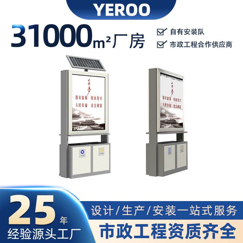 Kotak lampu gulung dua sisi papan reklame lampu iklan led vertikal bercahaya kotak lampu solar tempat sampah