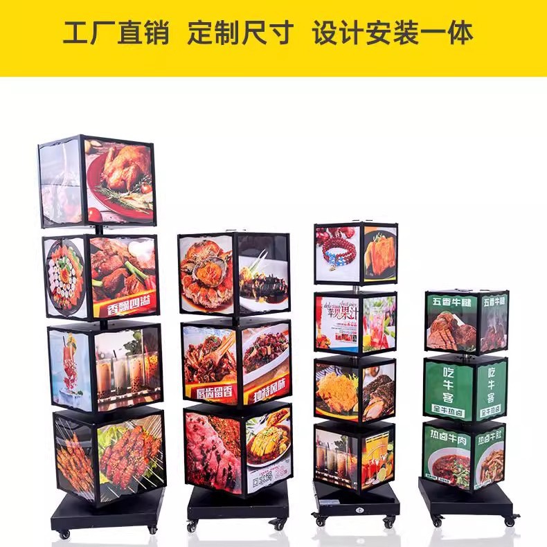 Papan Reklame LED Kotak Lampu Iklan Film Lunak Berputar Vertikal Lantai Otomatis Berputar Empat Lapisan Kab Kotak Lampu Berputar