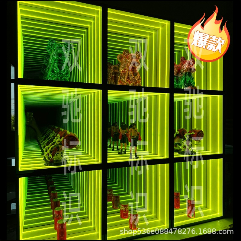 Cermin tak terbatas, cermin berlapis ribuan, kotak lampu, papan nama toko, huruf bercahaya, ubin lantai panggung bar, lemari lampu, cermin terowongan 3D untuk penggunaan komersial.