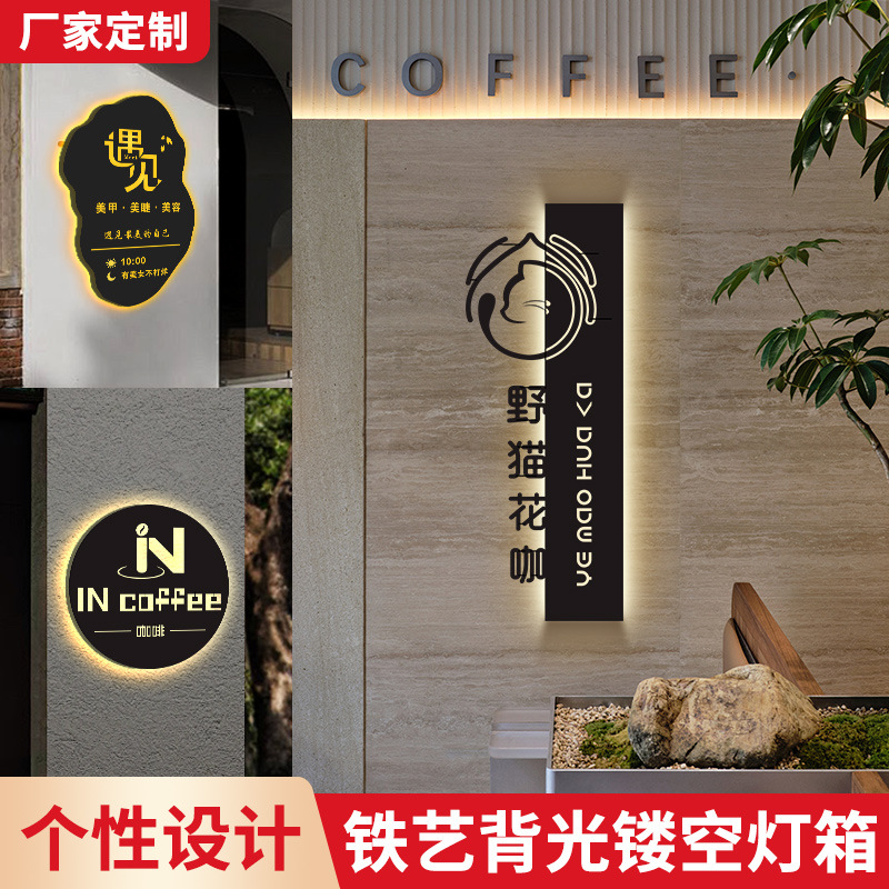 Kotak Lampu Selebriti Internet Papan Reklame Gantung Dinding Besi Stainless Steel Bentuk Khusus Toko Pakaian Tanda Tangan Pintu Karakter Bercahaya Kustom