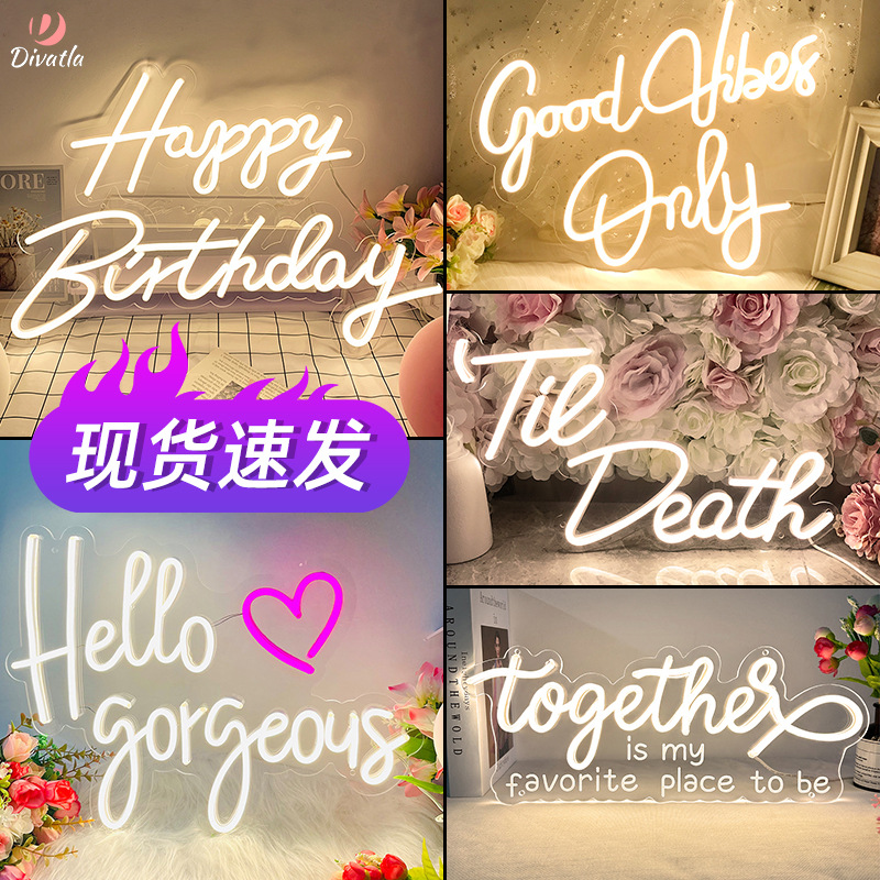 Cross-border lampu LED neon Selamat Ulang Tahun lampu pesta suasana lampu huruf dekorasi rumah papan nama bentuk neon